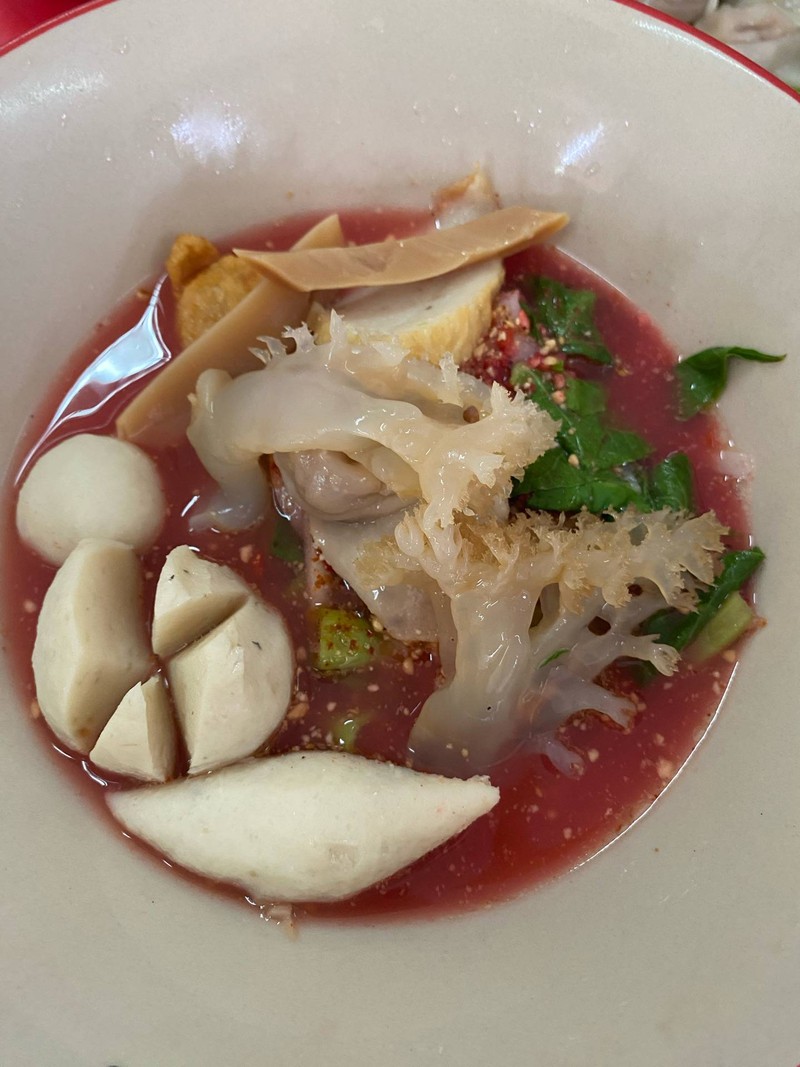 เย็นตาโฟร้านนี้อร่อยมากแทบไม่ต้องปรุง แถมยังมีลูกชิ้นลวกและแมงกะพรุนลวกอร่อยๆ กับน้ำจิ้มซีฟู้ดสุดแซ่บให้เลือกทานกัน เจ้าของร้านใจดี
